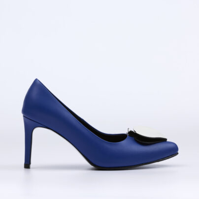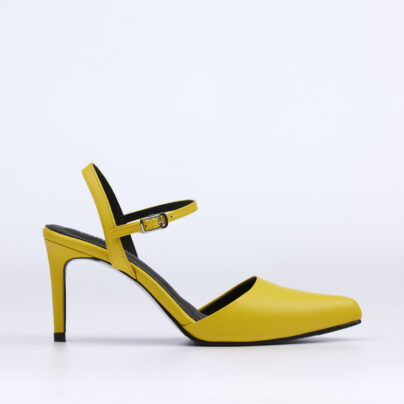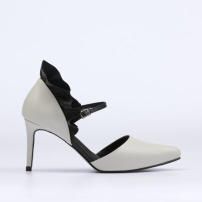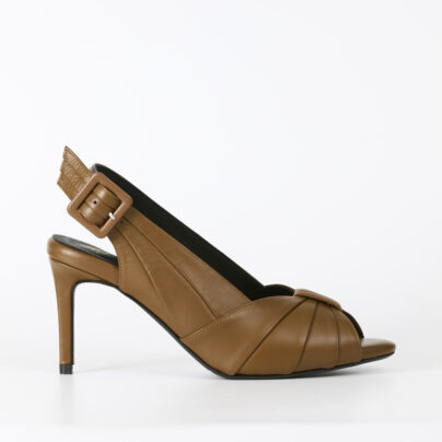 4.5-inch high heels with a front platform, featuring an open toe and a closed back design, decorated with lamb leather detailing